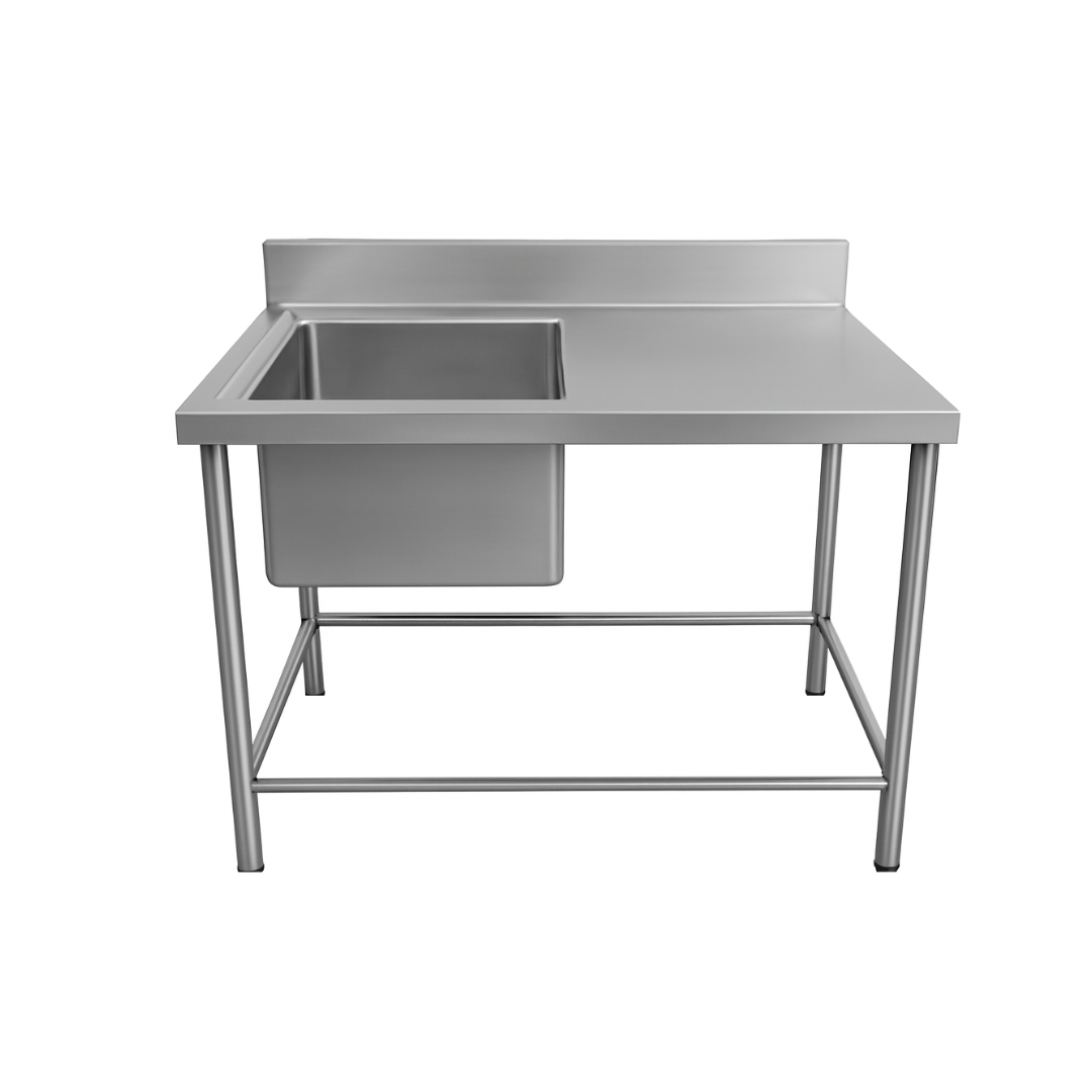 Manufactured by Davindas, this durable and easy-to-clean stainless steel single bowl sink is perfect for any commercial kitchen. The sturdy construction and high-quality materials ensure long-lasting performance. The sink features a single deep bowl for efficient cleaning and additional table space for food preparation and other tasks. Its user-friendly design makes it easy to install and maintain, making it an essential addition to any commercial kitchen.