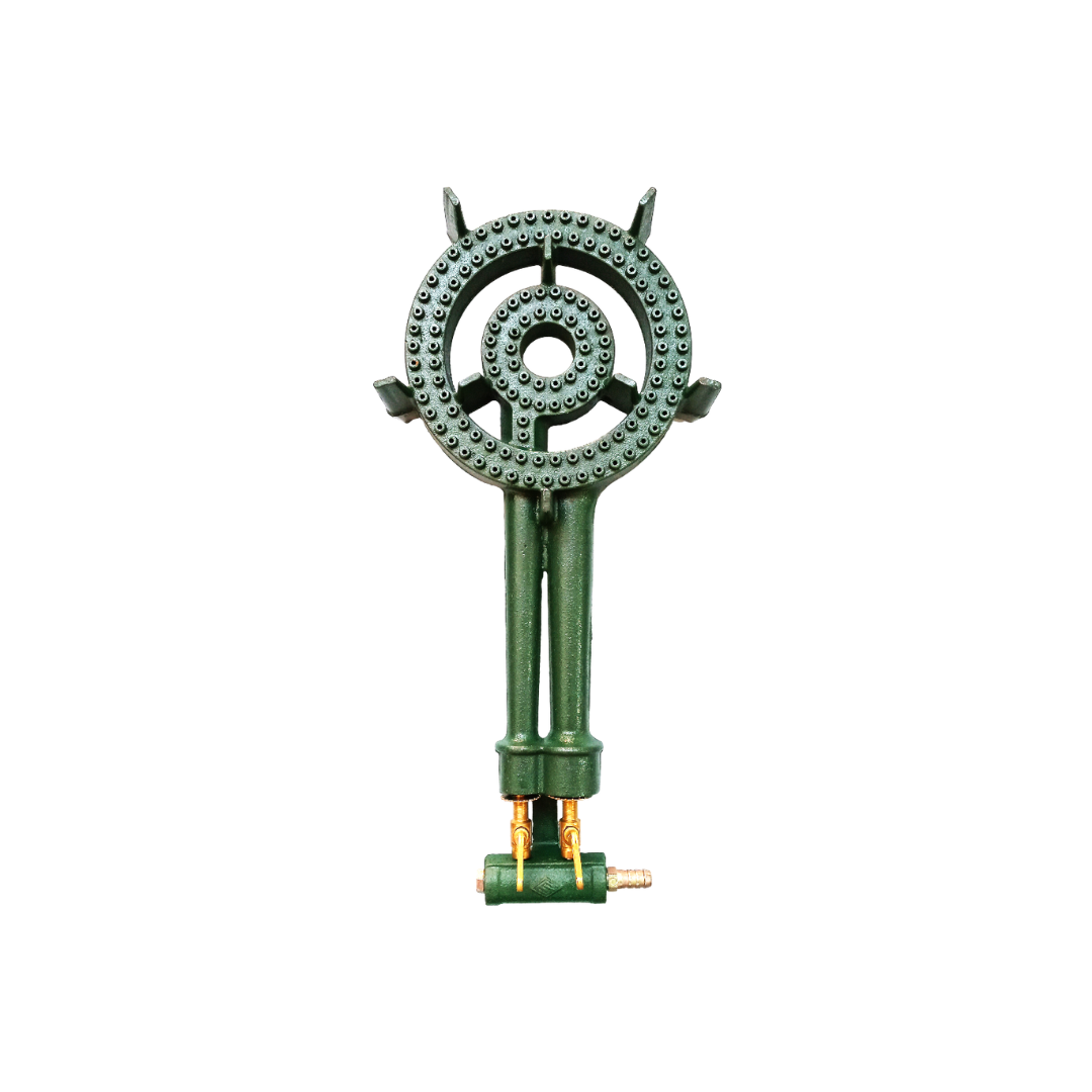 The heavy-duty 2-ring cast iron C-30 Burner (Malaysian) is designed for professional and commercial cooking to handle medium-scale cooking requirements. Each of its two brass valves can be individually controlled, providing precise flame adjustment for a wide range of cooking needs. Compatible with low-pressure LPG, it delivers efficient heating and supports all types of pots and pans with ease. Its robust construction ensures long-lasting performance, making it a reliable choice for mobile cooking setups, catering events, restaurants, hotels, and busy commercial kitchens. This burner is specifically designed to be fitted into a stand, ensuring stability and convenience during use.